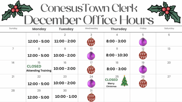 Town Clerk Hours Town Clerk Open Hours December 2025 December 4, 2025 Written by Town Clerk Continue reading